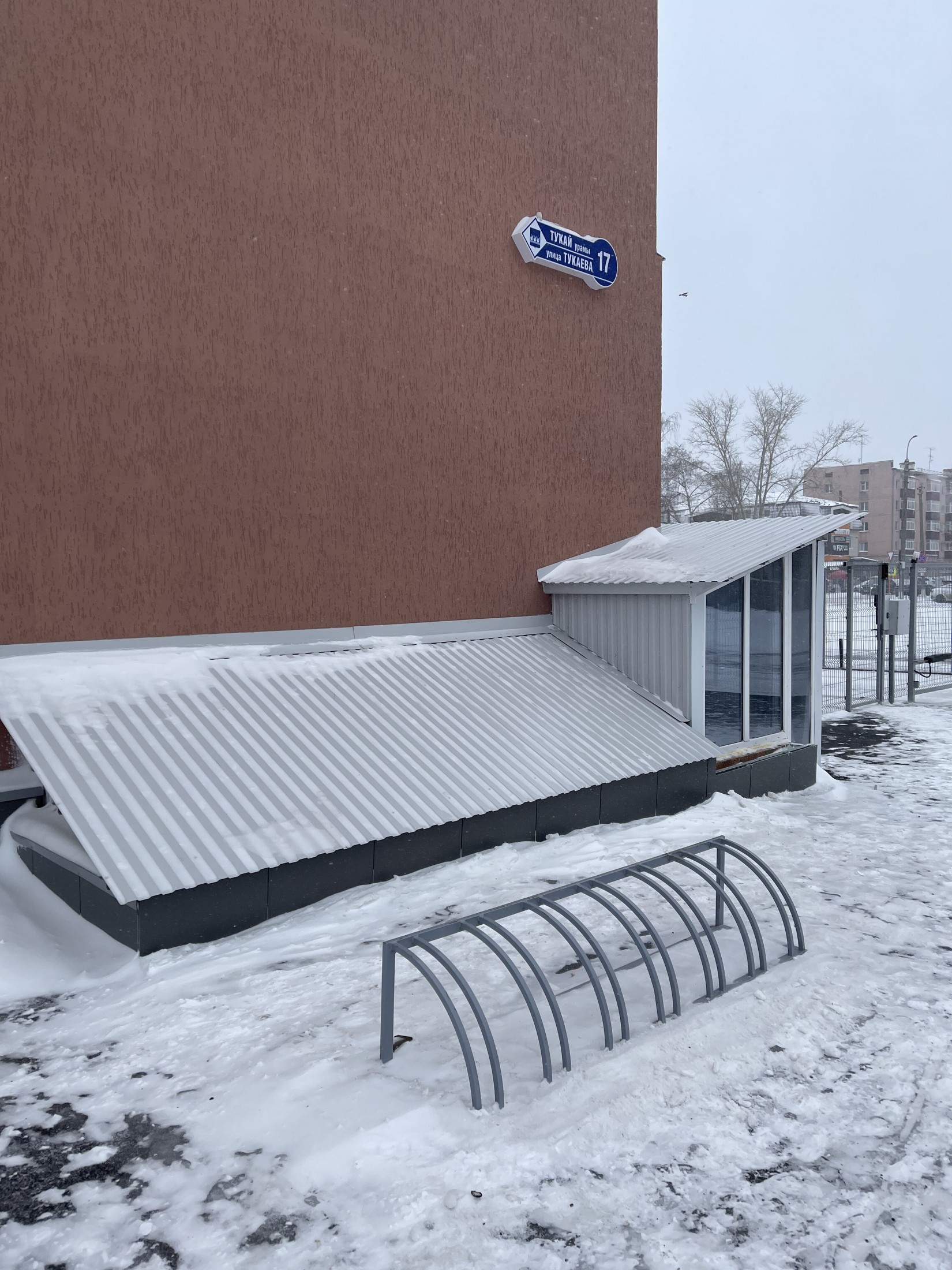 Площадки перед входом в подъезды выложены противоскользящей бетонной плиткой.